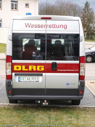 Der Einsatz im Wasserrettungsdienst des Bezirkes Breisgau, so wie das große Einsatzgebiet, von Hartheim bis Burkheim mit seiner Vielzahl an Baggerseen und die Überwachung mehrer Ruder- Segelregatten machte die Anschaffung eines neuen Fahrzeuges erfordrlich. Am 13. Oktober 2010 konnte  der Peugeot Boxer  333HDI 3.0 seiner Bestimmung übergeben werden.